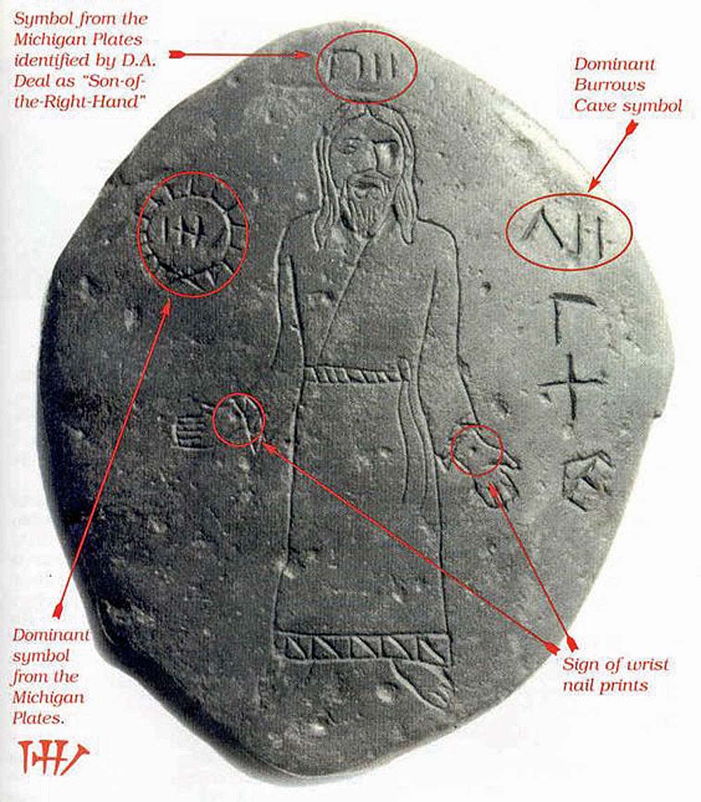 A representation of Christ. The “mystic symbol” is at the top and according to Brian Nettles is Yud Hey Vav and best translated as “The People of God”. The symbol on the bottom is “son of the right hand” or “the right hand of God” and “righteousness”.