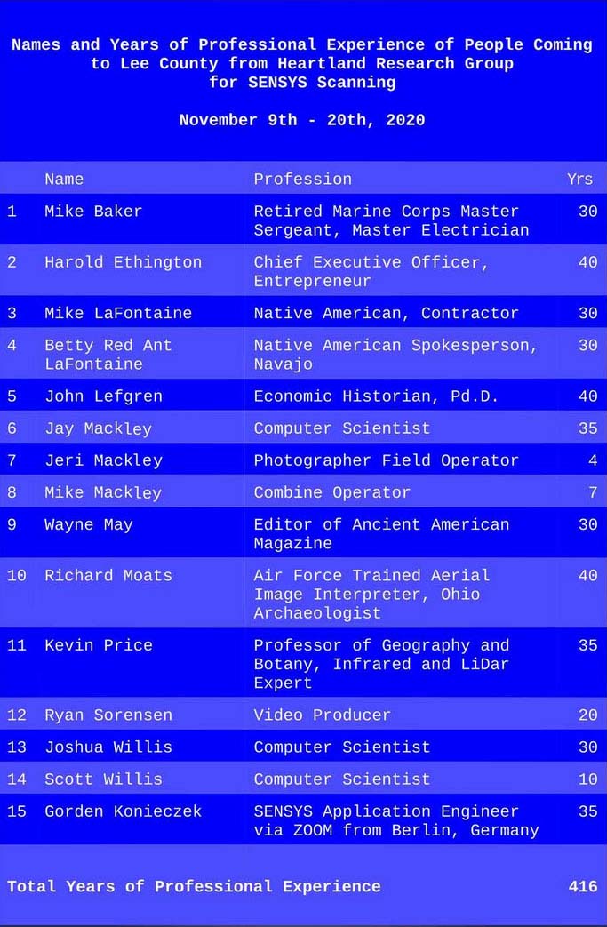 Fourteen people from the Heartland Research Group are involved in this search. Together they have 400 years of professional experience in science, history, digital imaging, and other disciplines.