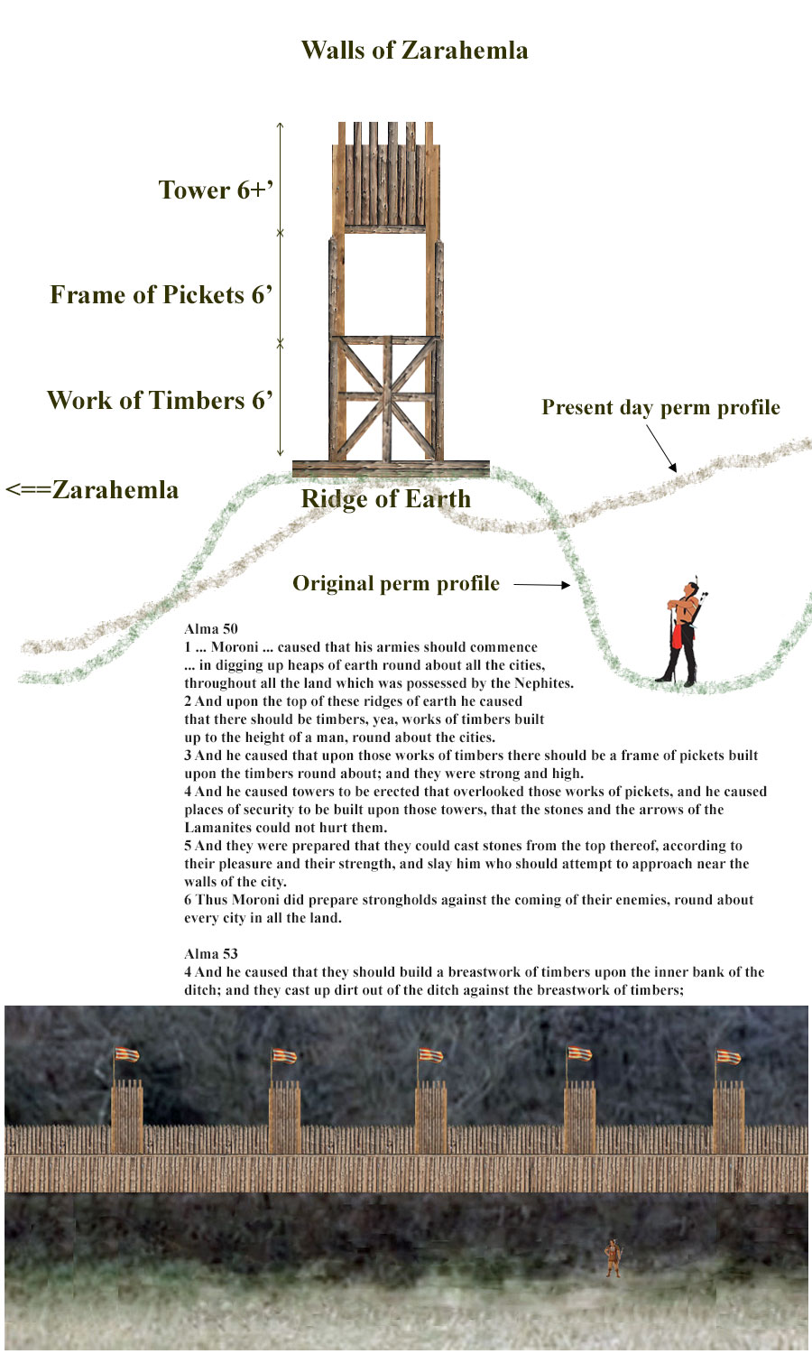 A description of the construction of defensive walls is given in the Book of Mormon. The image below is just one possible view of interpretation but it gives an idea of what we are considering and finding on the ground.