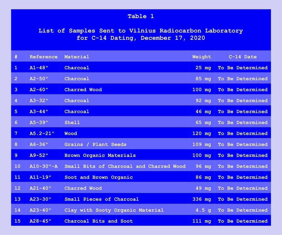 C14 dating results are expected to be available January 28, 2021. |
