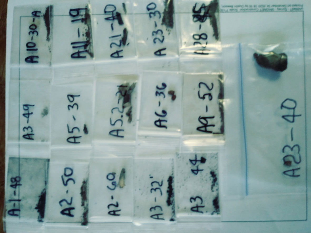 After the scanning was completed in Expedition 2, it was determined that core samples should be obtained for C14 dating. Having the magnetometer scans in hand is the key to knowing the GPS coordinates for good core samples. Instead of waiting for Spring of 2021 to obtain the core samples, Mike Stahlman was able to obtain the core driller and the necessary GPS receiver quickly so that core samples could be obtained in 2020. This was difficult physical work to do this manually in the cold, wind, and rain but it was accomplished in late November with Mike Stahlman, Scott Willis, and Wayne May on site.